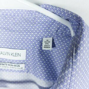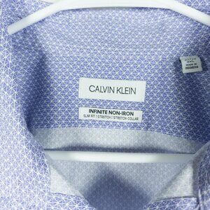 ck Calvin Klein Slim Fit Infinite Non Iron Blue Print Dress Shirt 18 32/33