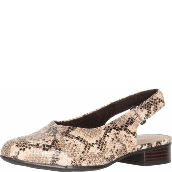 clarks slingback flats called juliet pull in snake pattern brand new in box perfection. gift giving condition. size 7 Narrow