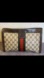 classic Gucci GG Supreme brown tan Sherry Line web stripe canvas clutch auth EUC