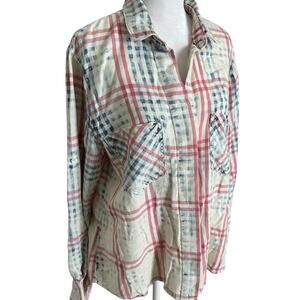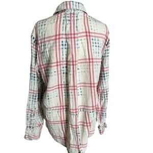 cloth & stone acid wash plaid button down long sleeve red white blue size M