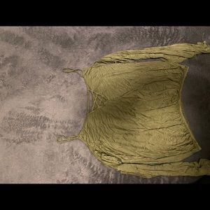 green long sleeve shirt tag cut out but size sm i think, $6