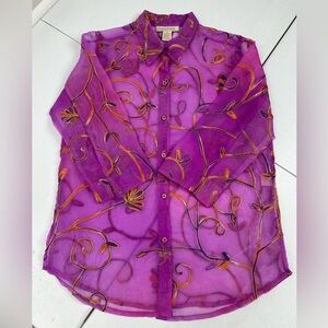 c.l.o.t.h.e.s. Sheer Floral Embroidered Button Front Collared Blouse Purple