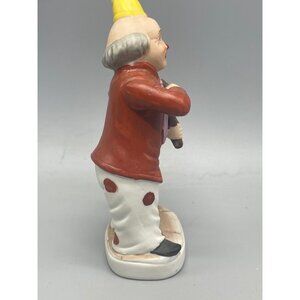 clown figurine white brown dots violin hat glass 5.5x2x2.5" collectable READ