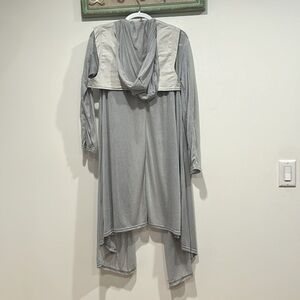 Open front cardigan with hood can be worn separately or under tactical bag vest