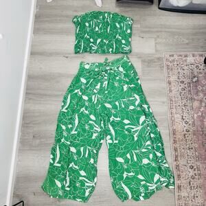 club z collection Green Floral Tropical Outfit Size L Split Pants And Halter Top