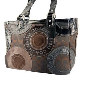 coach Rare Y2K Circle Patchwork Tote F15466 Brown Black Leather Shoulder Bag