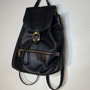 A soft, feminine take on a sporty style, our Evie backpack is crafted in scratch-resistant polished pebble leather. The exterior pocket offers easy access to phone, earbuds and more, while interior multifunction pockets and cinched drawstring closure keep essentials organized and secure. Finished with a convenient top handle, our Signature hardware accents the external snap closure for an iconic Coach touch.