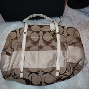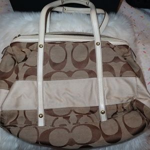 classic coach purse still in great condition its an off white color; stitching still in tact with leather straps. from a non smoking home.