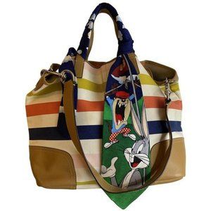 Coach Multicolor Fabric Shoulder/ Tote Bag w/ Add On Looney Tunes Tie Acessory