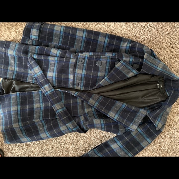black, blue, grey knee length coat