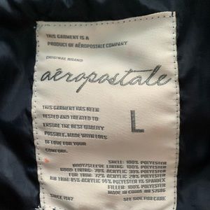 blue coat with buttons and zipper, put it as size small because the large tag is kids size