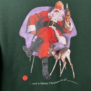 coca cola santa ugly Christmas sweater crewneck sweatshirt xs dark green retro