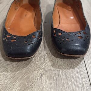 coclico Women’s Black Leather Slip On Ballet Shoes Size 38/7.5US Laser Cut