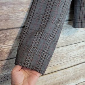 coco and chase | Grey Plaid Puff Sleeve Cropped Blazer M