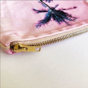 Style: Mini pouch with gold zipper. Same palm tree pattern on both sides. Can be used as a clutch or a pouch within a purse to keep track of smaller items.
