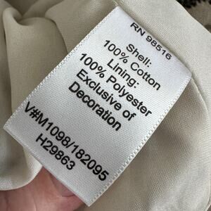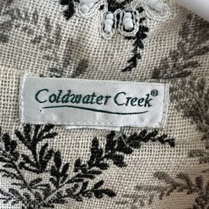 this coldwater creek embroidered blazer blends timeless design with refined detail. made from 100% cotton jacquard and fully lined in smooth polyester, it features a soft ivory base with black botanical embroidery and delicate beadwork along the collar and lapels.