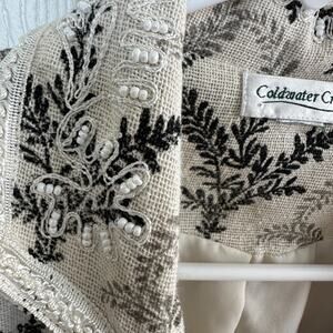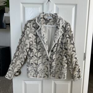 coldwater creek embroidered jacquard blazer women’s large ivory black floral beaded jacket