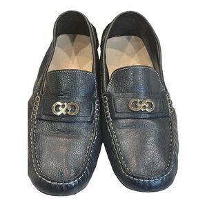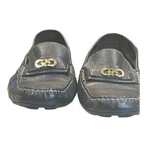 COLE HAAN SHELBY WOMENS BLACK LEATHER DRIVING LOAFER SIZE 10B WITH THE CH LOGO.