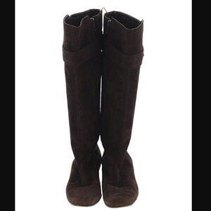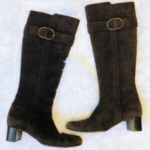 Dark chocolate suede Oriana tall boots by Cole Haan. Low heel for comfort. Size 5.5 B