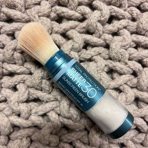 Powered by EnviroScreen Technology, this all-mineral powder sunscreen provides complete protection in one easy to apply and reapply, on-the-go brush. Wear this powder alone or over makeup for daily SPF 50 protection. Plus, it's water- and sweat-resistant up to 80 minutes and goes beyond UV with blue light, pollution, and infrared defense against premature signs of aging and skin damage.