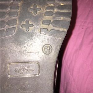 size 6-1/2 very cute and has zippers on the inside so you don't have to lace/unlaced them every time you want to put them on.