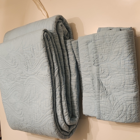 arto mosto luxury lifestyle quilt with pillowcases. size full/queen. color seafoam blue