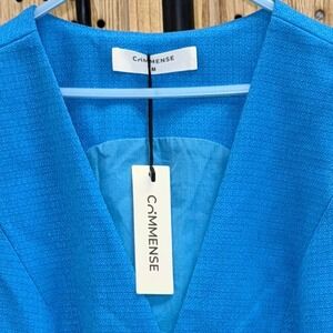 commense Womens Asymmetrical Vest Sleeveless Top Blue Gold Button Down