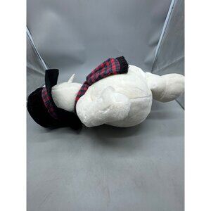 commonwealth snowden 1997 white Snowman Plush Toy top Hat & plaid Scarf 22" READ