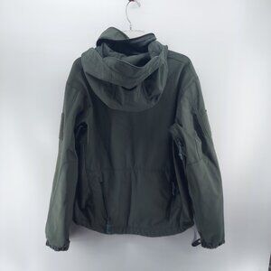 full zip , soft shell, army green hooded