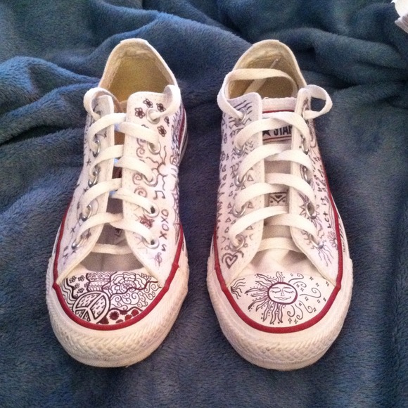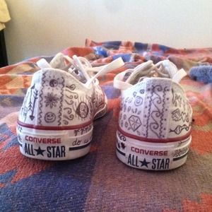 never worn, woman size 6, hand drawn all over original designed, white converse
