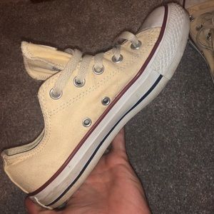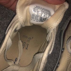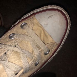 cream colored size 6. just need cleaned up a little. Right foot has a scuff but it made rub out with shoe cleaner