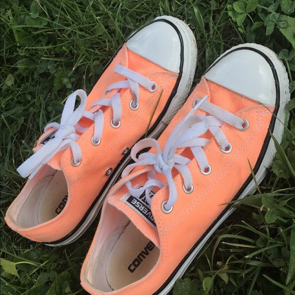 Coral/orange converse. Size us 3! super cute. Farley worn.