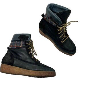 Excellent preloved coolway Black Leather & Plaid Lace Up Ankle Boots US 7