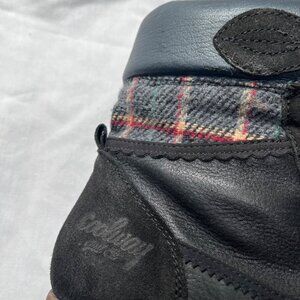 coolway Black Leather Plaid trim Lace Up Ankle Boots US 7