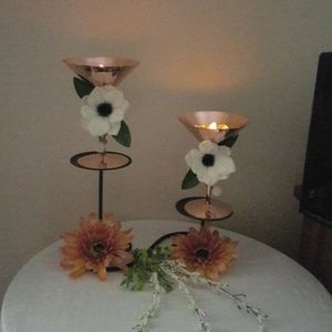 decorative martini glasses set w/scented flowers, tea light, and plastic diamonds