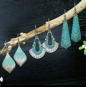 copper turquoise Tribal earring bundle Boho JEWELRY