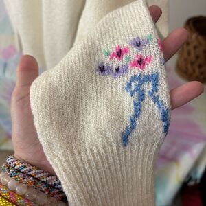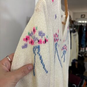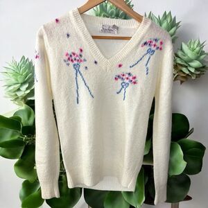 coquette vintage Cream Sweater with Floral Embroidery ROCHELLE cali bows floral