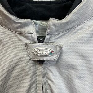 Cortech LRX women’s padded motorcycle jacket, size MPL, gray and white color, Pit 25 small tear on lining see picture.