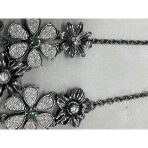 costume jewelry necklace floral black shine stones chain clasp 21" READ