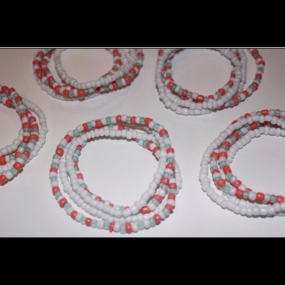 seed bead necklaces!! the cotton candy one and an all white one! 14” and stretchy