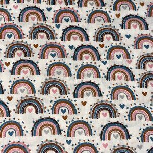 cotton fabric with rainbows hearts dots 42" x 72" 2 yards