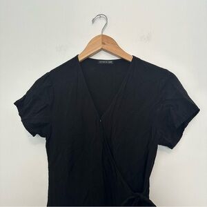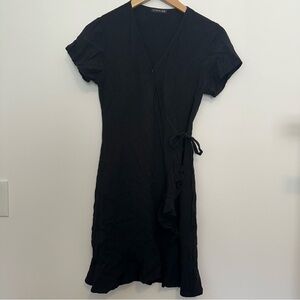 cotton on black short sleeve ruffle wrap dress
