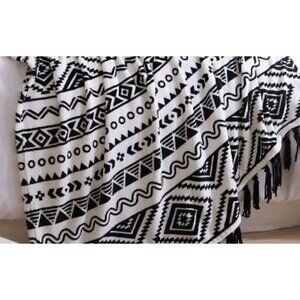 NWT COZY Black and White Boho with Tassel Throw Blanket Aztec Ultra Soft Bohemian Thick Fleece NWT