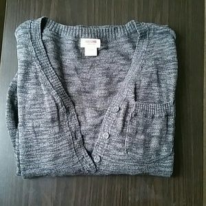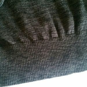 A never worn, single pocketed half way cardigan. A dark grey with a low to high hem. Very soft! 3/4 sleeves