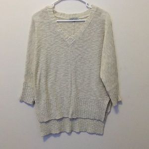 Cream colored knit sweater. It's super soft and would be great for the cold weather. The tag says large but it would fit more like a medium. There are no defects and it looks and feels brand new.