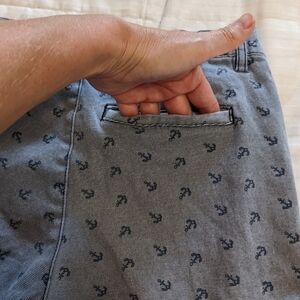 craft flow nautical flat front shorts size 14 it has a single button and zipper closure. two front pockets and one back pocket nice and soft. the rise measures 9 in and the inseam measures 8 1/2 in. I have another pair of shorts in the same brand and style and size in my closet and I offer 50% off of any bundle of two items or more so bundle and Save