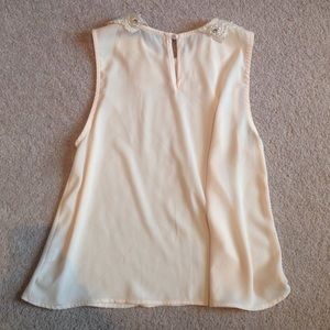 super cute cream blouse, just doesn't fit me anymore. in great condition and only worn a few times. has a Peter Pan collar with beaded pearls