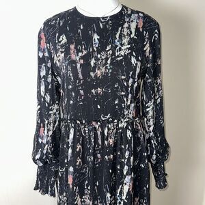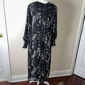 creative genius M Midnight Navy Multi Silver Metallic Long Sleeve Maxi Dress