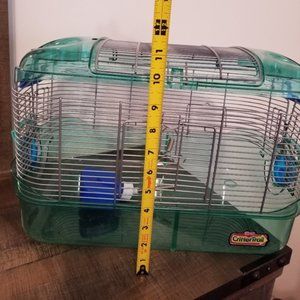 This is a great starter cage for dwarf hamster, mouse or any small critter. Purchased at Petco. These cages can be attached together for more space for your pet with a small attachment available wherever Kaylee cages are sold. Comes with water bottle but everything else can be purchased at Petco. Measurements are included in photos. Cage is in great used condition and will ship apart so assembly will be required. The cage is not fully put together in photos