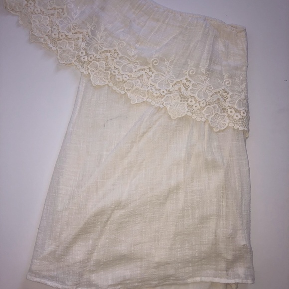 ⭐️End of season sale!!⭐️ A one shoulder crochet piece that can be worn as a top or mini dress/beach cover up. fully lined with the softest cotton